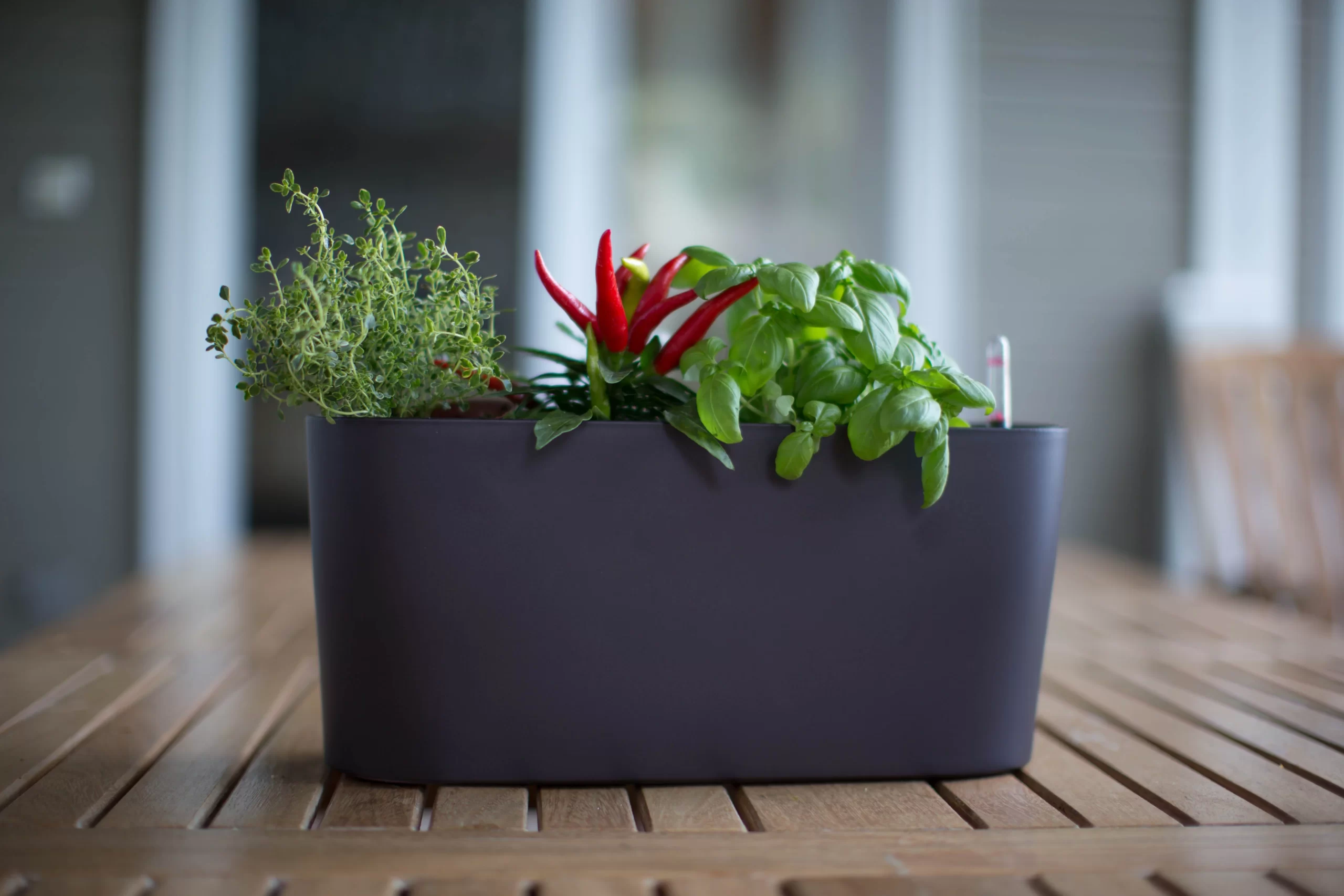 В комплект входит внутренний горшок с системой автополива, фитиль.