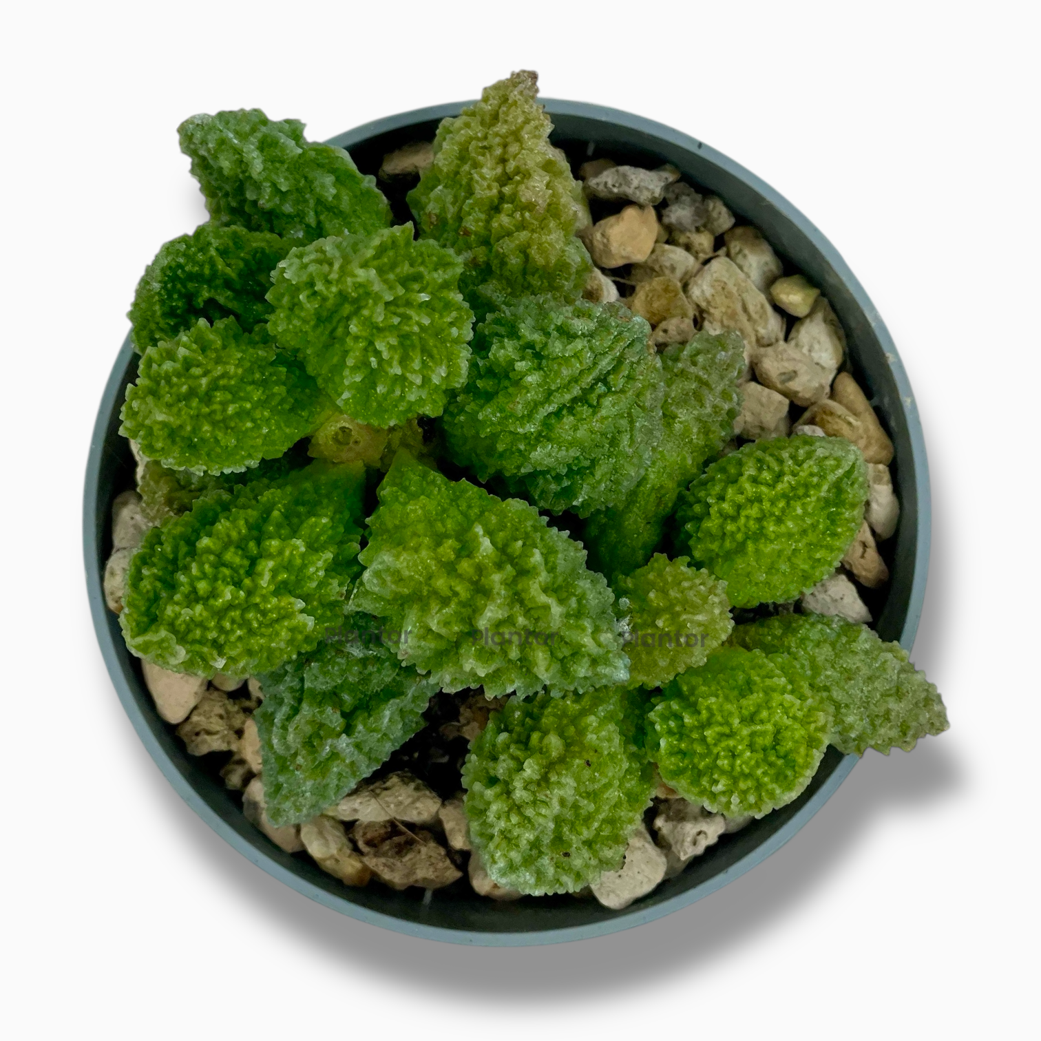 Адромискус Мариана Херри Грин — компактный и необычный суккулент с мясистыми бугристыми листьями зеленовато-серого цвета. Поверхность листьев может быть бархатистой или слегка шероховатой, а сами они напоминают крошечные камешки или капли застывшего воска. Это редкое коллекционное растение, которое ценят за экзотичный внешний вид и простоту в уходе.