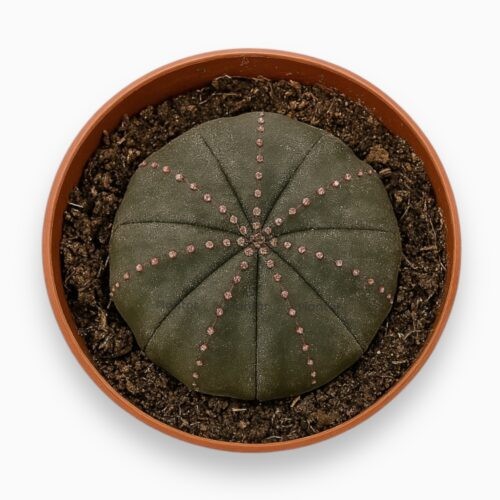 5. Euphorbia Obesa (Молочай тучный) Небольшой шаровидный вид, напоминающий кактус. Идеален для тех, кто собирает миниатюрные суккуленты. Стебель покрыт сегментами, которые делят поверхность на ребристые участки.