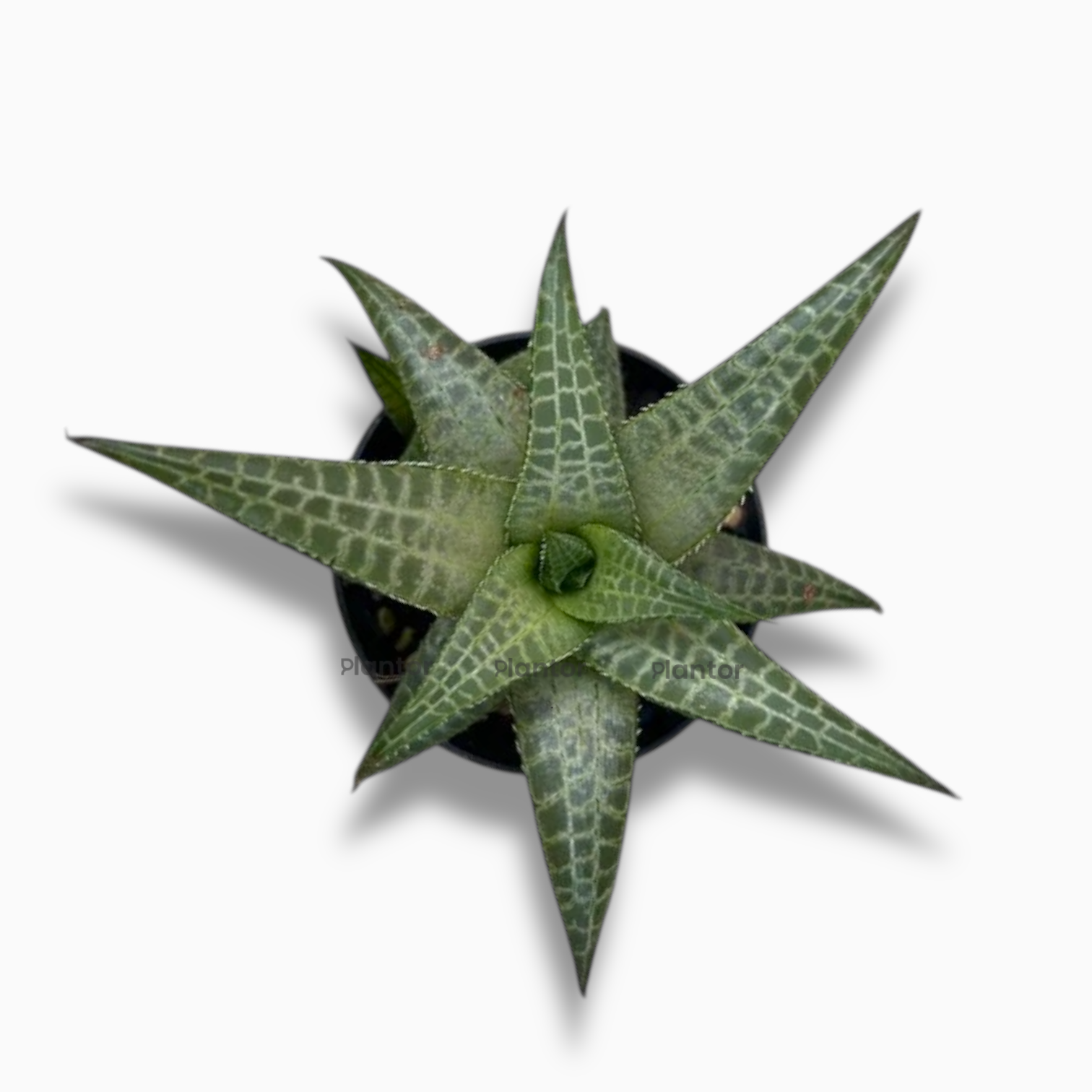 Хавортия Тесселата — компактное суккулентное растение с густыми мясистыми листьями, покрытыми узором в виде светлой сетки или “плитки”, за что оно и получило своё название. Листья треугольной формы собраны в плотную розетку, а необычная текстура придаёт растению графичный и стильный вид. Идеально подходит для подоконников, мини-садов и оформления рабочих пространств — неприхотлива и эффектна.