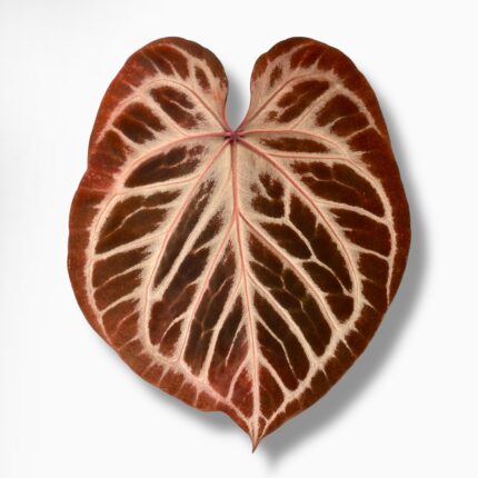 Антуриум Пинк Блаш — декоративно-лиственный антуриум с бархатными листьями тёплого розово-коричневого оттенка и чёткими светлыми прожилками. Сердцевидная форма и мягкий «пудровый» тон делают растение утончённым и коллекционным. Выглядит аккуратно и статусно, сразу привлекает внимание. Отличный вариант, чтобы купить антуриум с нежным, редким характером.