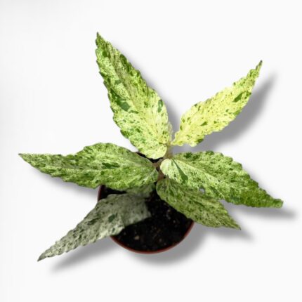 Алоказия Сандериана Вариегата — редкий коллекционный сорт с узкими резными листьями и контрастной вариегатностью. Светлые участки подчёркивают графичную форму и делают растение ярким акцентом интерьера. Выглядит экзотично и статусно. Отличный вариант, чтобы купить алоказию для коллекции и выразственного пространства.